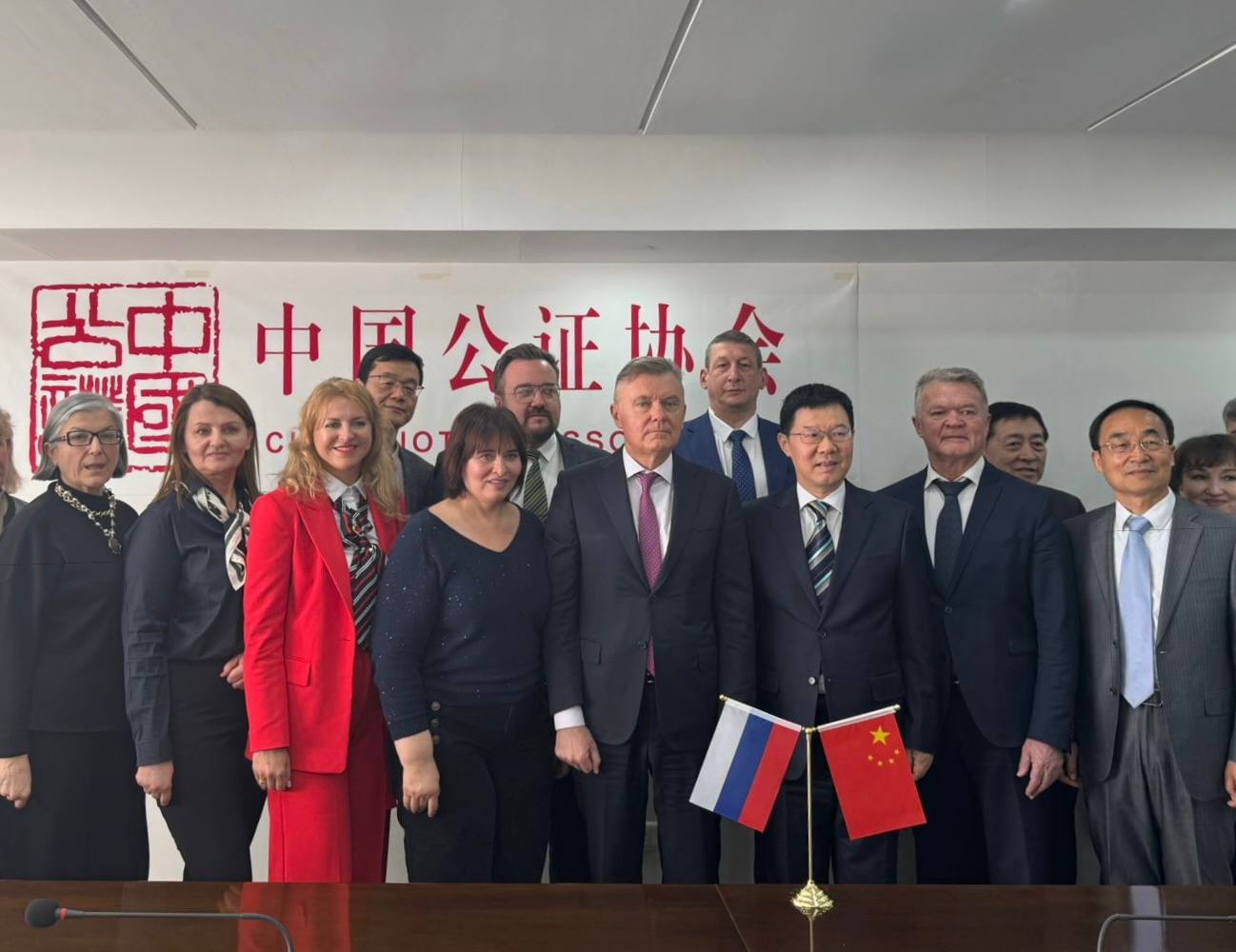 Нотариальное сообщество КНР представляли президент Ассоциации нотариусов Китая Чжоу Юаньшэн, генеральный секретарь ассоциации Сюн Фэй, заместитель генерального секретаря Ван Цзянь, представители отдела международных связей, отдела профессиональных вопросов и генерального секретариата Ассоциации нотариусов Китая.